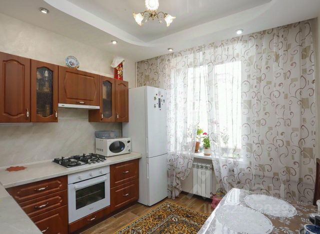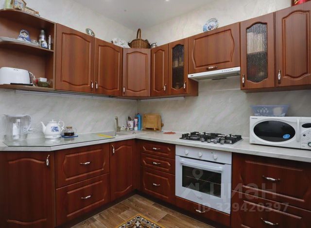 Качественные деревянные двери, фигурные арки в коридоре с деревянной отделкой, окна с немецкими деревянными стеклопакетами. Стены и потолки оштукатурены, зашпаклеваны и выравнены. Сан.узел и ванная комната отделаны европейским кафелем, в ванной комнате натяжной потолок со встроенными лампами, полы из качественного ламината, натяжной потолок на кухне.