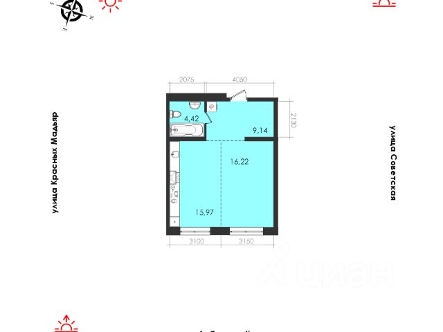 Информация о площади квартиры носит ознакомительный характер, не является публичной офертой.Указана проектная площадь квартиры с балконом/лоджией без применения понижающих коэффициентов. Возможно отклонение фактической площади квартиры в пределах 5%. Информацию о фактической площади квартиры уточняйте в отделе продаж., ЖК "Суворов" состоит всего из трёх блок-секций, объединённых единой архитектурой. Расположение комплекса даёт массу преимуществ для его жителей — всё нужное уже есть рядом. Развитая транспортная инфраструктура улицы Советской позволяет даже без автомобиля добраться до центра за 10-15 минут.