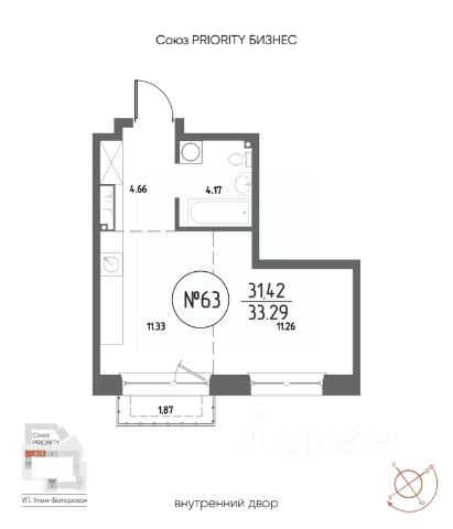 Продаётся 1-комнатная квартира в строящемся доме (Дом 4), срок сдачи: III-кв. 2029, общей площадью 33.29 кв.м., на 12 этаже. Мы начали с эталона - жилого комплекса Союз Priority, лучшего в России. А теперь представляем его логичное и яркое продолжение Союз Priority MAX. Наследие качества: Проверенные материалы, безопасные дворы, изысканные подъезды. Дух современности: Технологичные решения, демократичная атмосфера, энергия большого города. Ваше комьюнити: Это больше чем дом. Это точка притяжения для вашей семьи, друзей и тех, кто разделяет ваши ценности