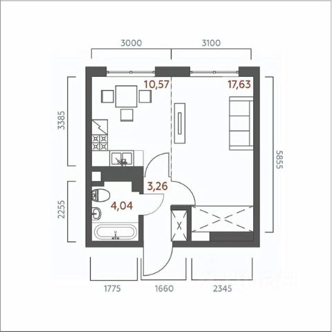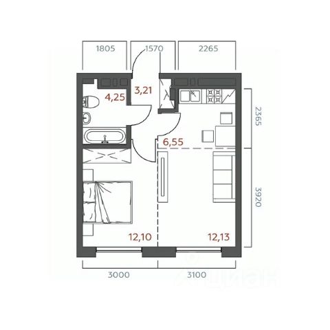 — Планировка — на ваш вкус: можно использовать решение от застройщика или создать собственную конфигурацию. Сейчас это открытое пространство в предчистовой отделке — легко подстроить под ваш образ жизни.