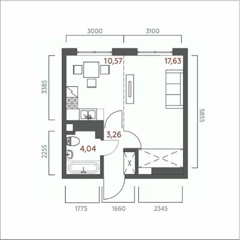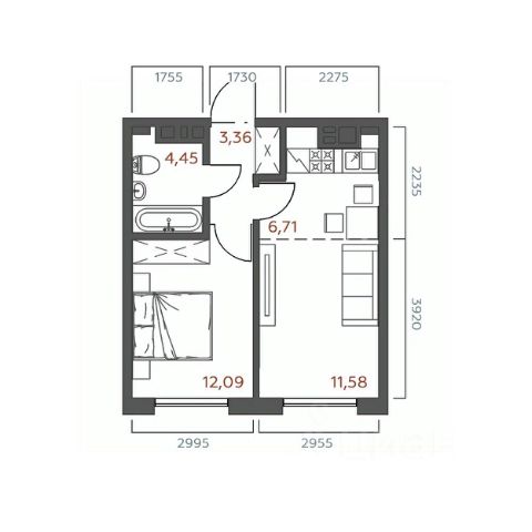 Площадь: 37 м².