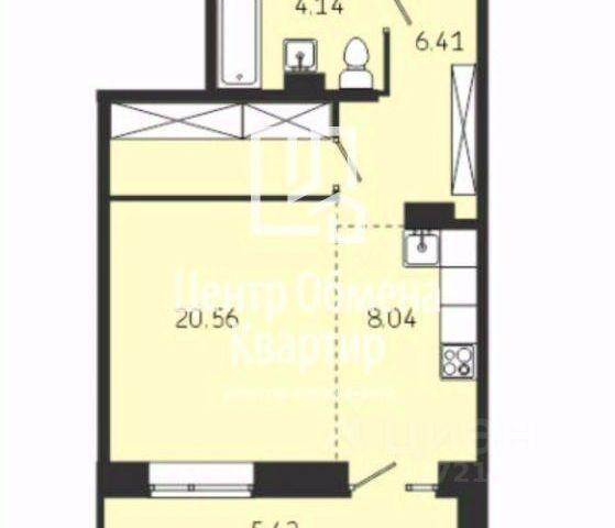 На кухне можно организовать гостиную зону, использовать квартиру как евро-двухкомнатную.