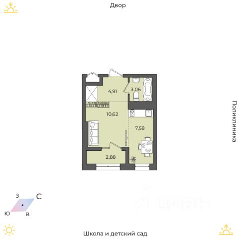 Продаётся 1-комнатная квартира в строящемся доме (Дом 17 (Академика Герасимова, 10)), срок сдачи: I-кв. 2026, общей площадью 29.05 кв.м., на 6 этаже. Расположение, транспортная доступность