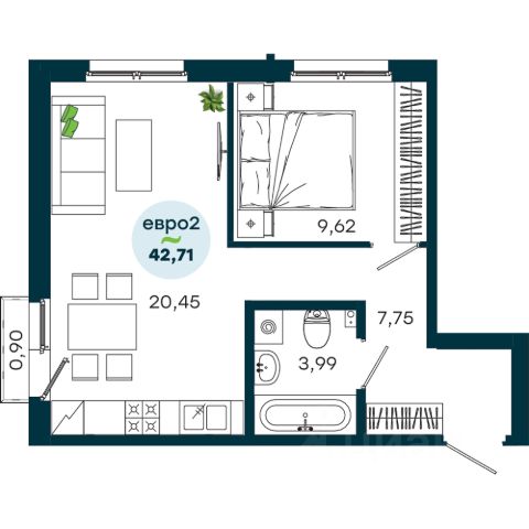 Продаётся 1-комнатная квартира в строящемся доме (Дом 17 (Академика Герасимова, 10)), срок сдачи: I-кв. 2026, общей площадью 46.19 кв.м., на 1 этаже. Расположение, транспортная доступность
