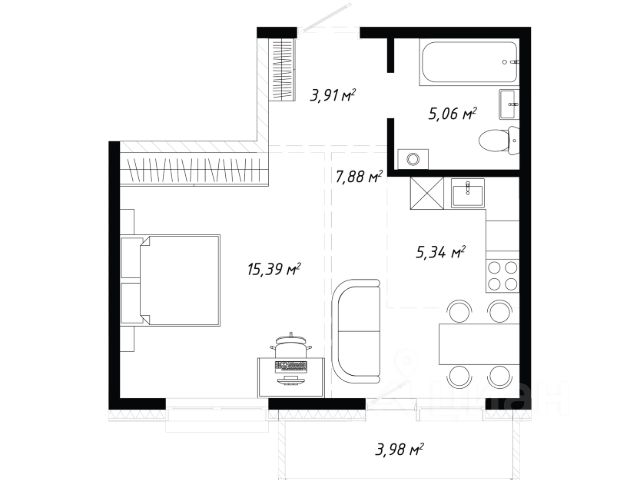 • ✅ Минимальная площадь: 33,9 м²