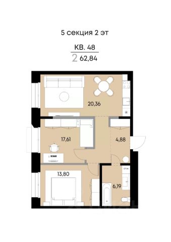 Планировка: зал совмещенный с кухней, отдельная спальня, санузел, постирочная комната.