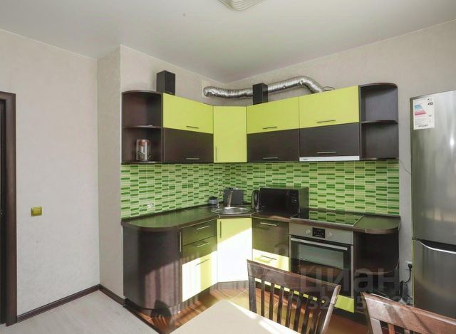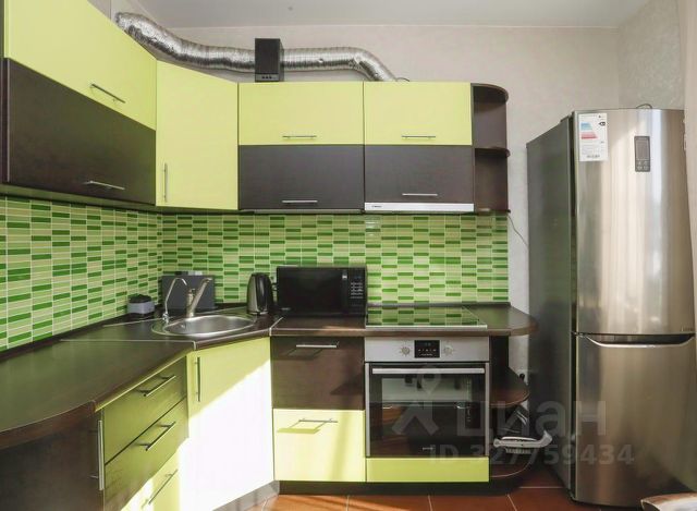 Жилые помещения занимают 46.5 квадратных метров, кухня размером 18 кв м, каменная столешница, профессиональная вытяжка, электрическая плита, холодильник side by side, посудомоечная машина все остается.