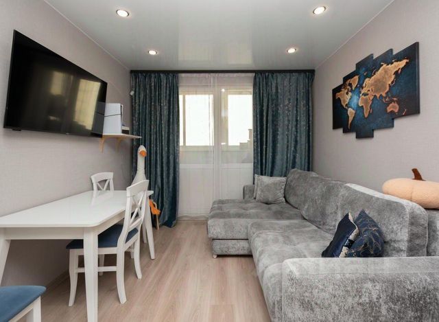 Уютно-оборудованная лоджия, утепленная отделка, теплые полы и освещение, зона отдыха с мебелью, как полноценная отдельная комната, с диванчиком, столом и шкафом.