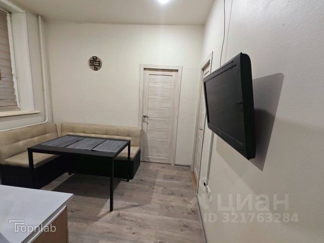 Потолки натяжные по периметру всей квартиры, установлены светильники. входная зеркальная дверь.