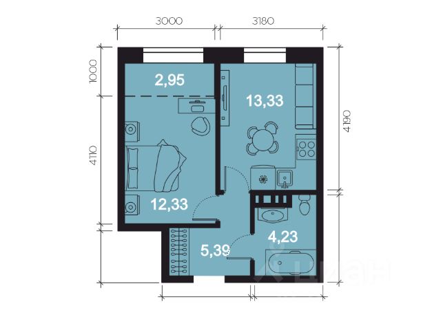 Комфортабельная двухкомнатная квартира европейской планировки для трёх-четырёх человек. Вместительная прихожая позволит установить шкафы-купе для хранения вещей. Жилые комнаты благодаря панорамным окнам на запад получат много естественного света даже в пасмурную погоду. Площадь кухни-столовой компактно вместит не только необходимое оборудование, но и позволит проводить долгие вечера за семейными разговорами. Гостиная находится в центре квартиры и органично соединяет в себя потоки из всех помещений. Санузел просторный, с возможностью разделения на два помещения.