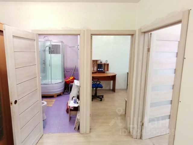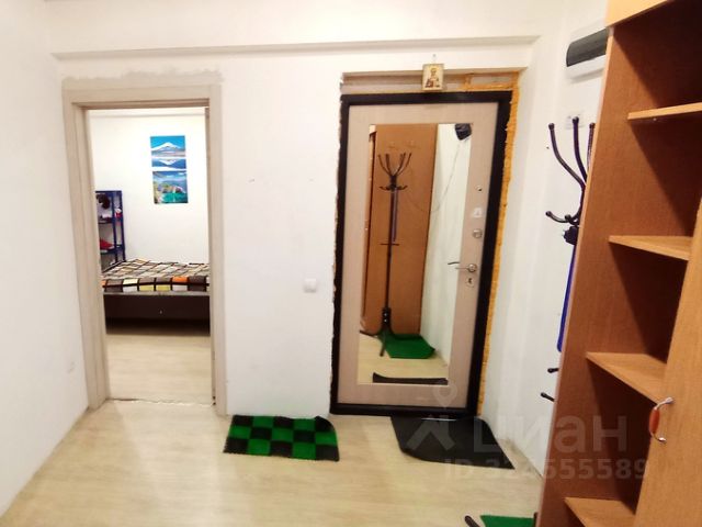 Потолки натяжные по периметру всей квартиры, установлены светильники. входная зеркальная дверь.