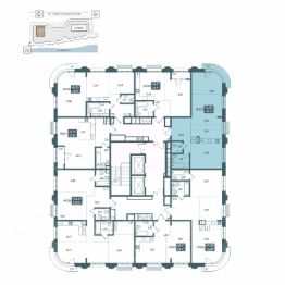 Планировка квартиры: комната 14 кв.м., комната 14 кв.м., гостиная 35 кв.м., кухня 10 кв.м., ванная комната с санузлом 4 кв.м., второй санузел.