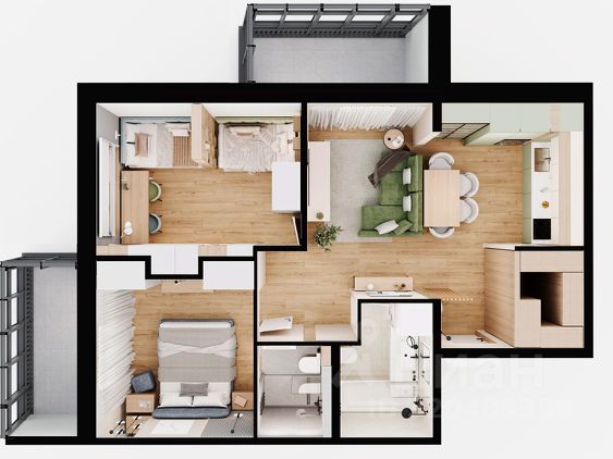 + Грамотная планировка: большая кухня-гостя и две отдельные спальни, просторная застекленная лоджия :позволяет и разместить всех членов семьи, и уединиться, и принять гостей.