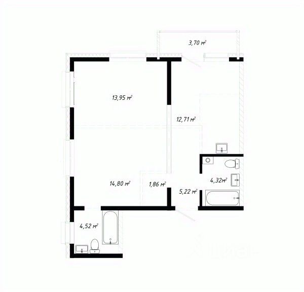 Есть возможность перепланировать квартиру следующим образом: комната 14 кв.м., комната 14 кв.м., комната 10 кв.м., кухня-гостиная 35 кв.м., ванная комната с санузлом 4 кв.м., второй санузел.