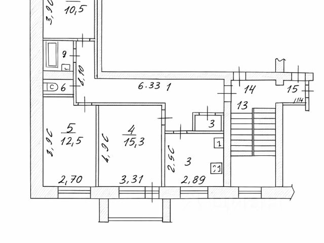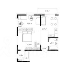 Планировка квартиры: комната 14 кв.м., комната 14 кв.м., гостиная 35 кв.м., кухня 10 кв.м., ванная комната с санузлом 4 кв.м., второй санузел.