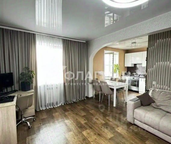 Качественные деревянные двери, фигурные арки в коридоре с деревянной отделкой, окна с немецкими деревянными стеклопакетами. Стены и потолки оштукатурены, зашпаклеваны и выравнены. Сан.узел и ванная комната отделаны европейским кафелем, в ванной комнате натяжной потолок со встроенными лампами, полы из качественного ламината, натяжной потолок на кухне.
