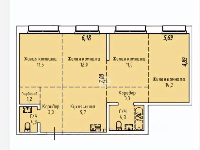 Классическая двухкомнатная квартира с двумя спальнями и большой 20-метровой кухней-гостиной. В прихожей предусмотрена возможность создать гардеробную комнату. Площадь коридоров позволяет установить несколько шкафов-купе для сезонных вещей. При входе располагаются два раздельных санузла друг напротив друга. В гостиной есть возможность выгородить нишу для кладовой и хранения габаритных вещей. Гостиная располагается на южной стороне дома, спальные комнаты — на западной, что подарит обладателям квартиры много солнечного света на протяжение всего года.