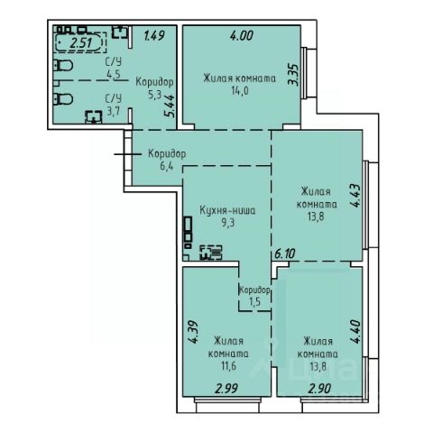 Вместительная четырёхкомнатная квартира для большой семьи с большим холлом-прихожей, гардеробной комнатой и двумя раздельными санузлами. Кухня-ниша органично сочетается с гостиной. Жилые комнаты от 11 до 14 кв.м. прямоугольной формы позволят разумно использовать пространство не только для отдыха, но и работы. Окна на две стороны — север и восток. Закрытый двор. Колясочная. Подъезд с выходом на две стороны и паркинг подземный и наземный охраняемый. Во дворе детская площадка, видеонаблюдение, круглосуточная охрана.