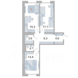 Отличная планировка все комнаты раздельные! Состоит из двух комнат площадью 18,8 кв м и 14,5 кв м, просторной кухни 10,9 кв. м, большой прихожей со встроенным шкафом-купе, совмещенного санузла. План квартиры во вложении.
