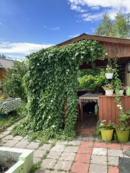 продам дачный дом с встроенной баней в СНТ Медик 2 , 9км по Мельничной пади. земля и дом в собственности, документы в порядке, можно прописываться. Дом 5,5 на 6 плюс терасса 1,5 на 6. Дом каркас бруса 18х18 обшит ОСБ,стены утеплены Пеноплекс 5см, но не зашиты внутри, снаружи покрыт свето/влагостойкой пропиткой. второй этаж мансарда, перспектива постройки жилого помещения. Внутри имеется действующая баня 3 на 4 шлифованное лиственничное бревно, поделена на парную и помывочную. В парной толстостенная железная печь, широкий полог . Под баней ленточный фундамент шириной 40см с армированием, отдельная плита под печью. грунт гидроизолирован Технониколью 1,5см под всей площадью бани, сделан с уклоном в сливную яму 1,5 на 1,5м, глубиной 1,7м. вода уходит хорошо. под остальным домом ж/б опоры 40 на 40. в дом заведен летный водопровод. подключено электричество на 15квт Южные э/с, на участке дополнительный столб, в доме распределительный щит.. Крыша двухскатная , покрыта профилем 0,8мм. Потолок утеплен перлитом 15см. дом требует минимальный внутренней отделки для комфортного времяпровождения. Пол 40ая доска. Если его утеплить, то дом будет пригоден для зимнего проживания. Участок расчищен, выровнен в 2уровня: при въезде подготовлен котлован 8 на 10 для постройки дома. часть деревьев оставили в качестве живой изгороди. Соседи живут круглосуточно. В садоводстве имеются 2 скважины. Два заезда в садоводство, отсыпанные дороги, шлагбаумы. Вторая дорога (короткий путь) выходит на 15ую улицу, как раз рядом с нашей 14ой.