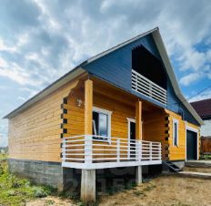 340 кв.м. Цоколь - монолитный бетон. 1 и 2 этажи из 18 бруса, проконопаченный и утепленный дополнительно снаружи, так что энергоэффективность в норме. Дом уже осел, проведена внутренняя черновая отделка на 1 этаже, на 2 этаже свободная планировка. Снаружи дом обшит фиброцементными панелями по японской технологии, веранда из бревна 45 диаметра выполнено в стиле лофт с большой террасой на 2 этаже.