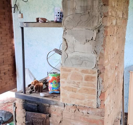 - гостиная с печкой-камином, совмещенная с кухней