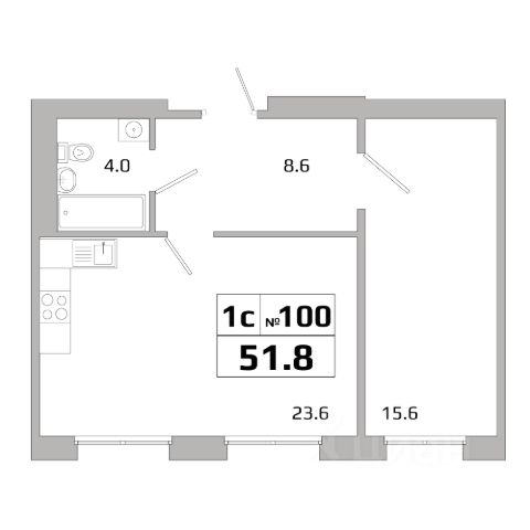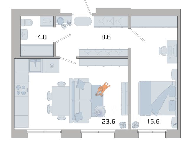 • жилая площадь 30,9 м² (комнаты 22,2 и 8,7 м²)