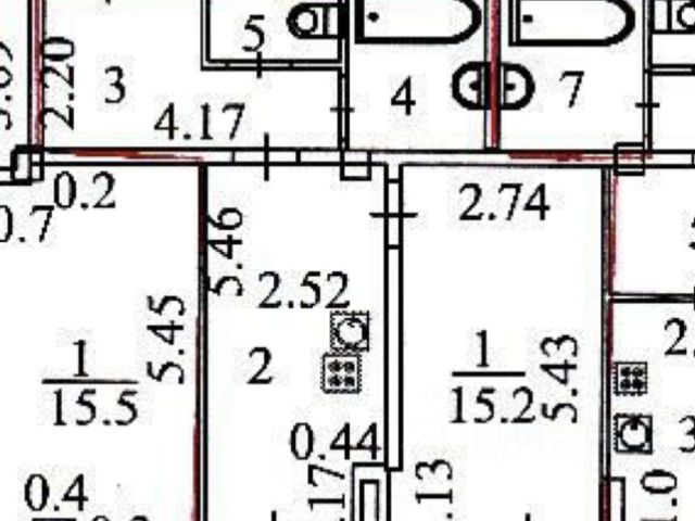 Общая площадь квартиры 44,2 квадратных метра: