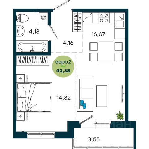 • ✅ Минимальная площадь: 42,3 м²