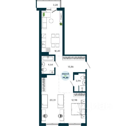 • ✅ Объект наибольшей площади: 79,2 м²