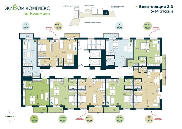 "Живой комплекс на Кузьмихе" это новый проект от компании МДС. Здесь сочетаются развитая инфраструктура Свердловского района, близость к транспортной развязке и видовые характеристики на воду и плотину ГЭС. Это семейный жилой комплекс, где все необходимое для жизни, находится прямо на первых этажах это экономит время и делает жизнь проще. Здесь найдут место те, кому важно проводить время с семьей и друзьями, заниматься воспитанием детей и уделять большое внимание живому общению. Частный детский сад, развивающий центр, медицинский кабинет, семейное кафе и главное собственный соседский центр. Это мультиформатное пространство, где можно будет оставить ребенка в игровой под присмотром, работать, учиться, посещать мастер-классы, образовательные курсы, спортивные занятия, собраться с соседями или отметить день рождения. 29 видов планировок для любого сценария жизни Квартиры с готовым ремонтом от 6,9 млн.рублей Двухуровневый закрытый двор Парадные с просторными колясочными Подземный паркинг на 128 мест Собственная управляющая компания и служба заботы о жителях Старт продаж 1 очереди! Выбирайте место, где вы будете ЖИТЬ!