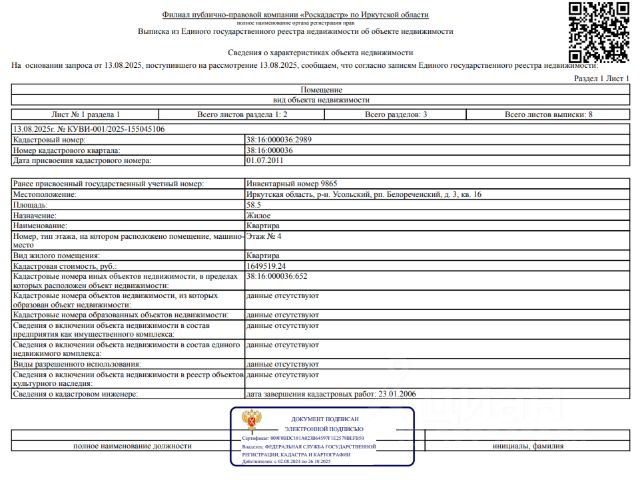 Данные получены с сайта ГИС Торги. Сведениями о фактическом состоянии объекта недвижимости, о задолженности по коммунальным платежам и взносам на капитальный ремонт, об обременении третьих лиц в виде сохранения права пользования объектами организатор торгов не располагает.Зарегистрирован один человек.