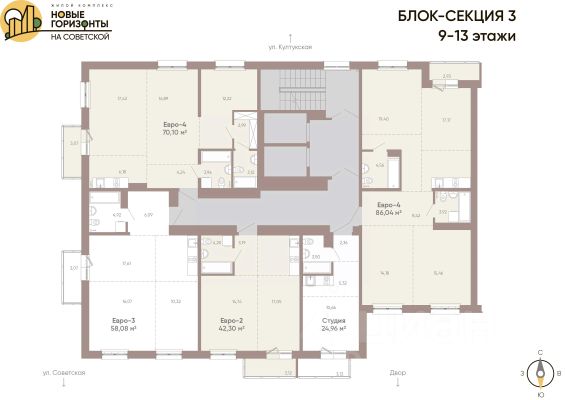 Информация о площади квартиры носит ознакомительный характер, не является публичной офертой.Указана проектная площадь квартиры с балконом/лоджией без применения понижающих коэффициентов. Возможно отклонение фактической площади квартиры в пределах 5%. Информацию о фактической площади квартиры уточняйте в отделе продаж., ЖК "Суворов" состоит всего из трёх блок-секций, объединённых единой архитектурой. Расположение комплекса даёт массу преимуществ для его жителей — всё нужное уже есть рядом. Развитая транспортная инфраструктура улицы Советской позволяет даже без автомобиля добраться до центра за 10-15 минут.