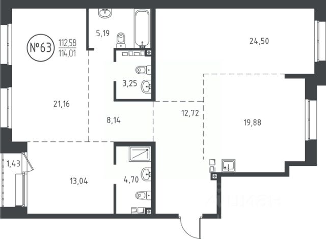 • ✅ Объект наибольшей площади: 114,2 м²