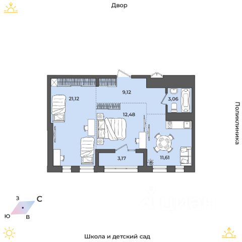 В поселке есть кафе и рестораны, рядом с домом - детская и взрослая поликлиники, неподалеку - кардиологический центр.