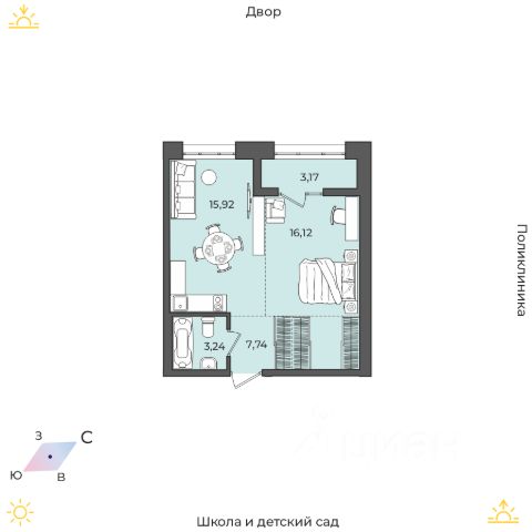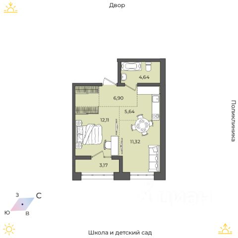 До ближайшего детского садика "Луговое", расположенного в соседнем ЖК, всего несколько минут неторопливой ходьбы. Это сад комбинированного вида, где при необходимости с детьми работают логопеды. Ближайшие школы расположены уже в черте города, но всего в 2-2,5 км от ЖК. Дорога займет примерно пять минут на машине или до двадцати минут на автобусе.