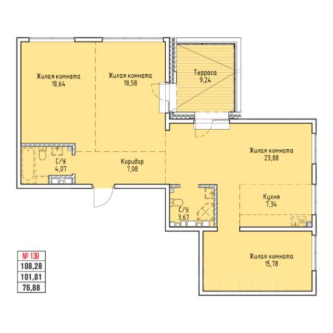 Продаётся 4-комнатная квартира в строящемся доме (ул. Култукская, 2 очередь (БС 6)), срок сдачи: IV-кв. 2027, общей площадью 108.28 кв.м., на 17 этаже. Застройщиком ЖК является компания ООО "ДЕСС-ИНВЕСТ", входящая в состав группы строительных компаний "Восток Центр Иркутск".