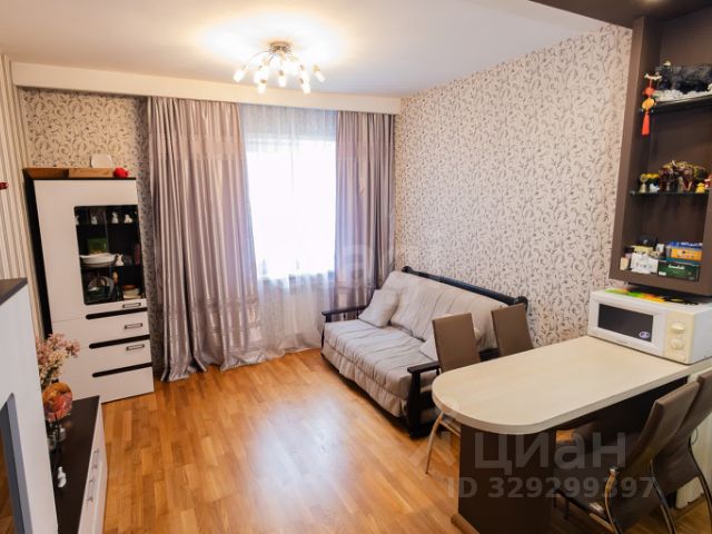 Малая комната с панорамным остеклением в пол на всю ширину, и предусмотренным обогревом примыкания к стене, выложенная кварцвинилом на пробковой подложке с системой управления освещением со смартфона, позволяет наслаждаться видами на Ангару с высоты 15 этажа.