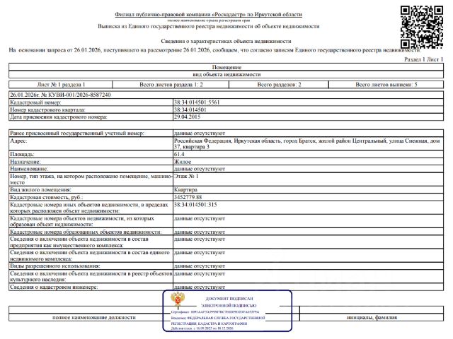 Данные получены с сайта ГИС Торги. Сведениями о фактическом состоянии объекта недвижимости, о зарегистрированных лицах, о задолженности по коммунальным платежам и взносам на капитальный ремонт, об обременении третьих лиц в виде сохранения права пользования объектами организатор торгов не располагает.