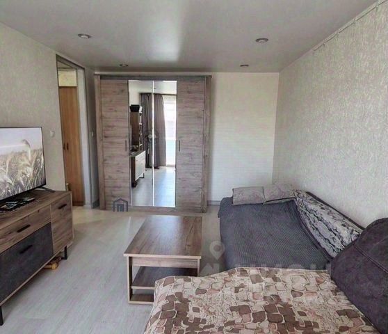 Площадь 38 кв.м., планировка: кухня-гостиная, спальня, застекленный балкон. Установлен зеркальный шкаф-купе.