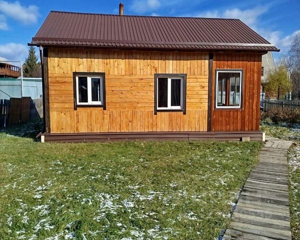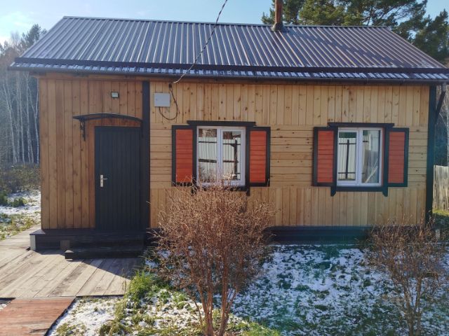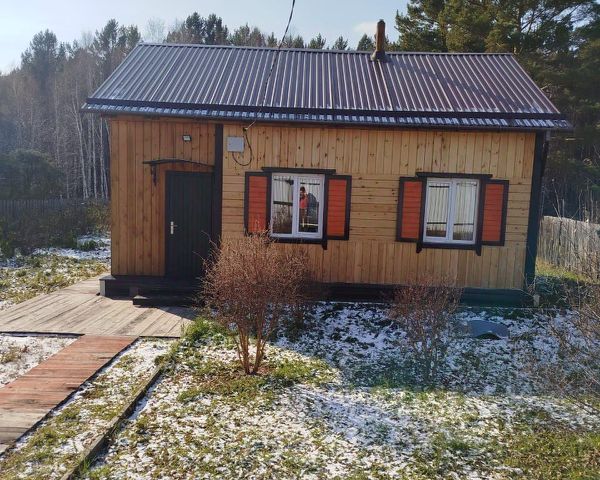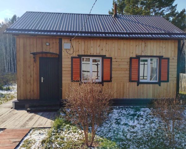 Размер дома 6*8 м. из бруса размером 180*180мм. одноэтажный, фундамент бетонный ленточный, год постройки 2016г. По наружному периметру утеплитель 50мм. обшивка стен 'Имитация бруса'. Высота потолков 3 метра. В доме комната 18 кв.м., печь кирпичная размер 900*900мм. Санузел 9 кв.м., душевая кабина размер 900*1100мм., водонагреватель 80 л., мембранный бак 100 л., раковина, унитаз, стиральная машина автомат. Кухня 9кв.м., Веранда 12 кв.м. обшита доской 'Евровагонка'. В доме электрический теплый пол, электрический кабель Корейский компании Lavita уложен в стяжку пола толщиной 40мм. и регулируется автоматически. В санузле и кухне уложена кафельная плитка, в комнате и на веранде - ламинат. Окна пластиковые, два окна по наружному периметру закрываются деревянными ставнями ручной работы. На участке есть хоз.блок размер 3*5м., летний туалет, скважина, выгребная яма, летний водопровод, насаждения: смородина черная, красная, белая; крыжовник, малина, жимолость, сирень, голубая ель, пихта, кедры. Участок крайний, одной стороной имеет выход в лес. Две стороны участка огорожены деревянным забором высотой 1м.70см. Сторона участка, которая выходит на дорогу отгорожена профлистом высотой 1м.90см. есть ворота и калитка. От входной двери дома до хоз.блока и летнего туалета проложена деревянная дорожка. Участок находится на расстоянии 22 км от города. Чистый воздух и чистейшая родниковая вода укрепят ваше здоровье.