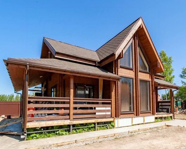 340 кв.м. Цоколь - монолитный бетон. 1 и 2 этажи из 18 бруса, проконопаченный и утепленный дополнительно снаружи, так что энергоэффективность в норме. Дом уже осел, проведена внутренняя черновая отделка на 1 этаже, на 2 этаже свободная планировка. Снаружи дом обшит фиброцементными панелями по японской технологии, веранда из бревна 45 диаметра выполнено в стиле лофт с большой террасой на 2 этаже.