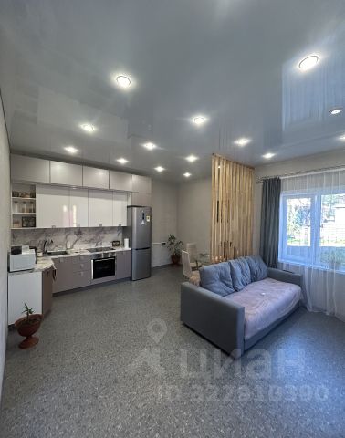 На первом этаже обустроено готовое жилое пространство по принципу студии с теплыми полами: просторная кухня-гостиная, функциональный санузел и практичная отделка.