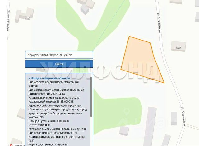 Продается участок площадью 5, 4 сотки . Земли населенных пунктов, для ИЖС. Преимущество-это возможность подключения центрального водоснабжения, труба проходит за забором по улице. Участок имеет уклон, на одной из фотографии старый дом землянка, сейчас дом разобран и вывезен, что облегчает строительные работы по своему проекту. Особенностью участка является его неровная форма, есть фото с кадастровой карты. Приемлемая цена для данного района. Взрослый собственник. Без долгов и обременений. Код пользователя: 118714 Номер в базе: 11985446 Продам земельный участок в микрорайоне Предместье Радищево в городе Иркутск.