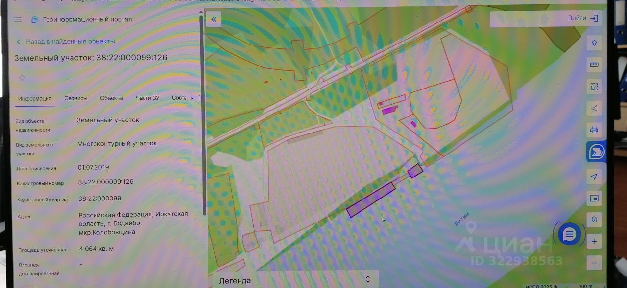 Земельный участок с кадастровым номером 38:22:000099:126 площадь 4064 по адресу Российская Федерация, Иркутская область, г. Бодайбо, мкр. Колобовщина