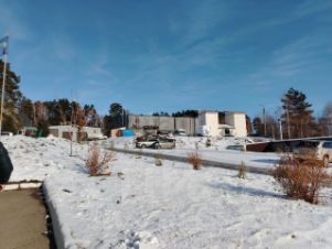 Есть столовая, маршрутка для сотрудников, тёплый гараж для ремонта техники.