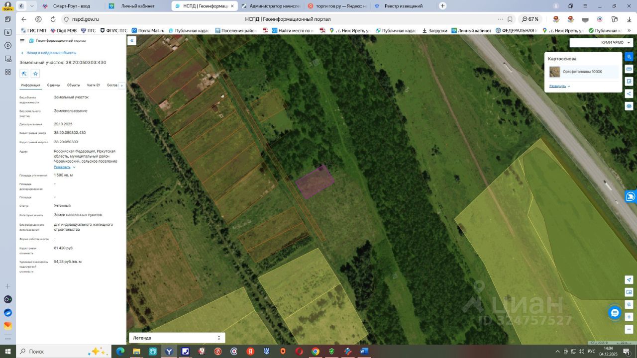 земельный участок из земель населенных пунктов, с кадастровым номером 38:20:050303:430, расположенный по адресу: Российская Федерация, Иркутская область, муниципальный район Черемховский, сельское поселение Новогромовское, деревня Малиновка, улица Молодежная, земельный участок 32, площадью 1500 кв.м, с видом разрешенного использования "для индивидуального жилищного строительства".