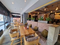 Шикарное светлое помещение со стеклянной стеной во всю длину.