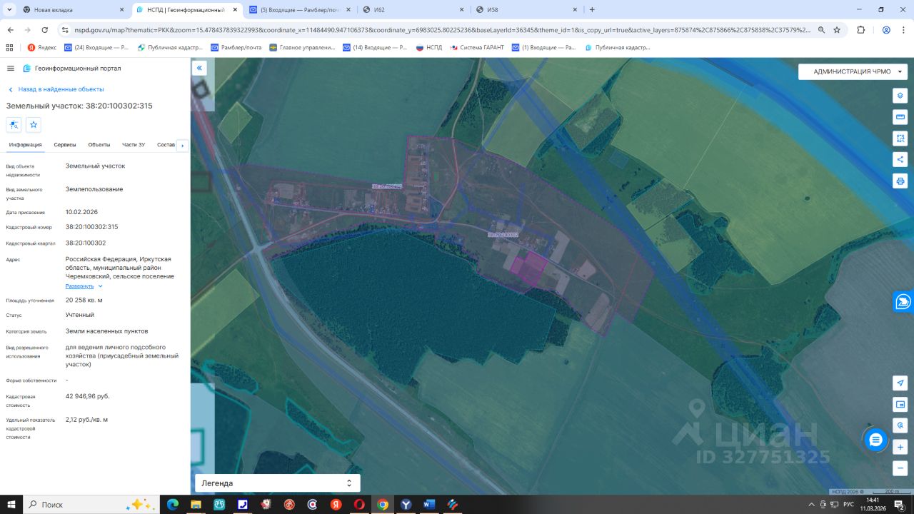 земельный участок из земель населенных пунктов с кадастровым номером 38:20:100302:315, расположенный по адресу: Российская Федерация, Иркутская область, муниципальный район Черемховский, сельское поселение Алехинское, деревня Заморская, улица Луговая, земельный участок 16, площадью 20258 кв.м., с видом разрешенного использования "для ведения личного подсобного хозяйства (приусадебный земельный участок)"