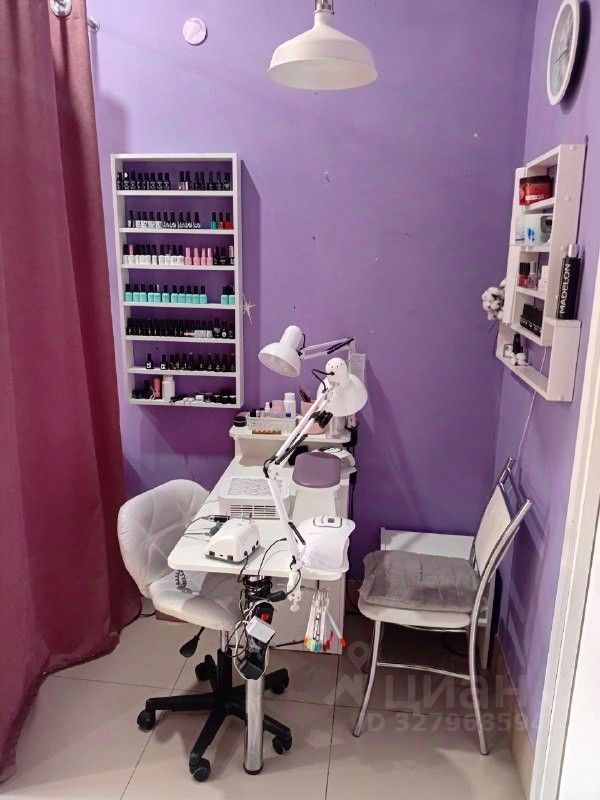 Уютный и полностью оборудованный кабинет в приятных фиолетовых тонах. Рабочее место готово к работе — просто приходите и принимайте клиентов.